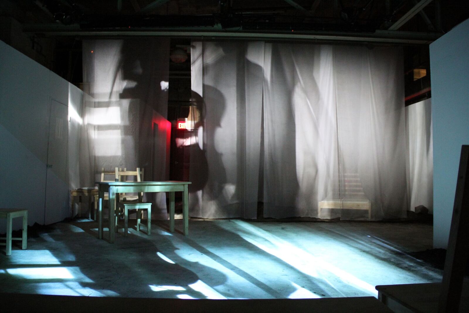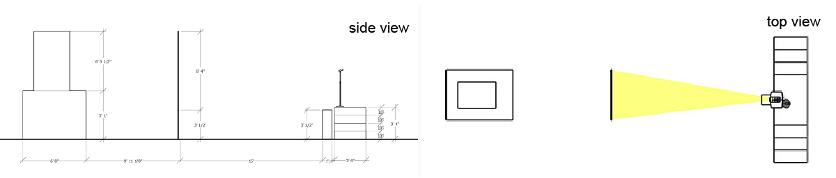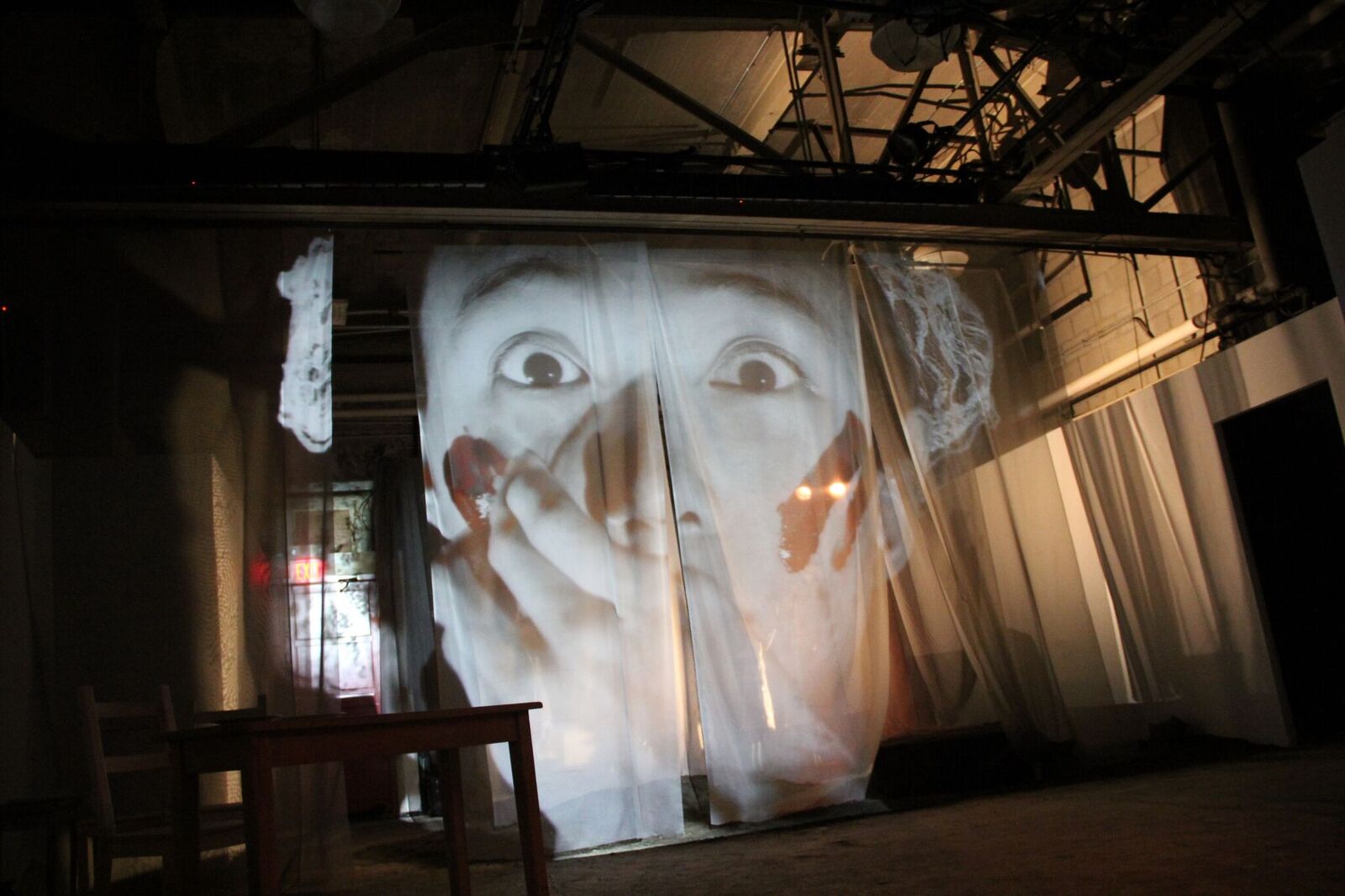 Projection test shots. Left: starting projection. Middle: in process of speech recognition. Right: Words slowly disappearing as the words are matched.